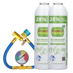 – 2 Flaschen +25 % HC1234yf – ein auf Kohlenwasserstoff basierendes Ersatz-Kältemittel. Das Set enthält 2 × 230 g Gas, was insgesamt 2 × 621 g R1234yf-Kältemittel entspricht.